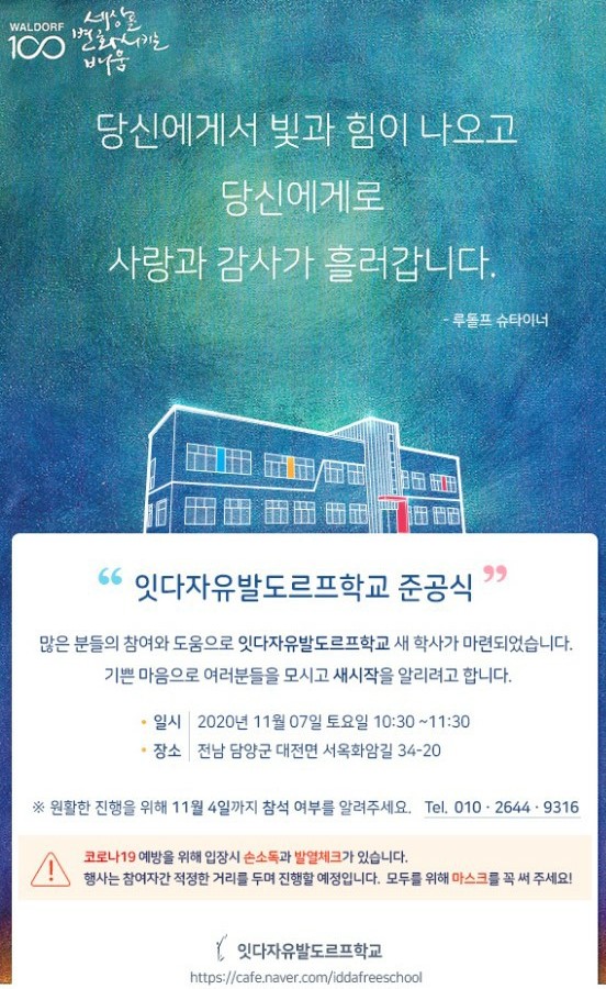 전남 담양군에 위치한 잇다자유발도르프학교가 새 학사 준공을 마치고 새로운 시작을 앞두고 있습니다.