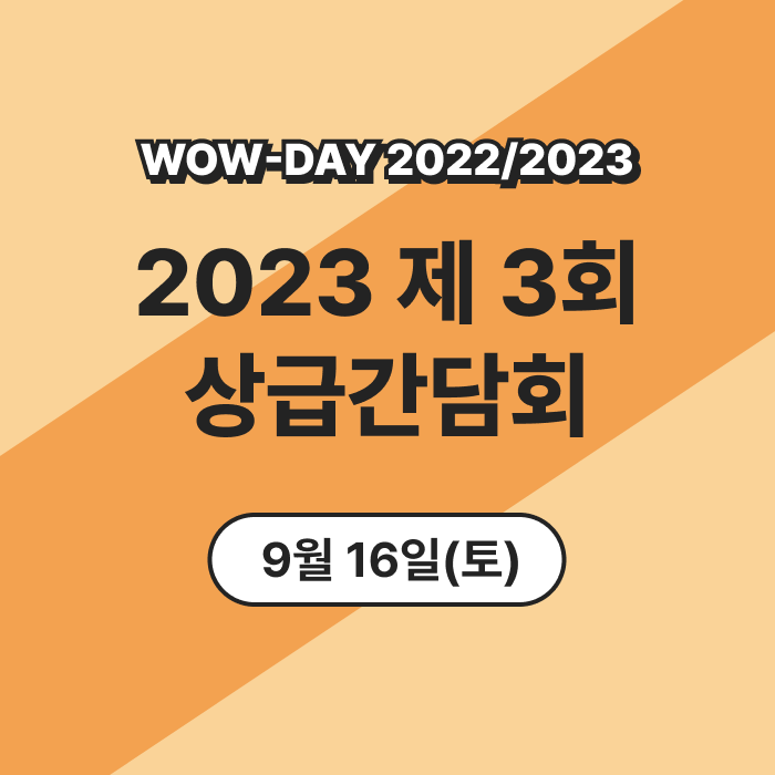 WOW-DAY 기획회의로 이루어집니다! 상급학생회, 상급 부모님, 상급 교사회가 하나 되어 WOW-DAY를 이루어 내고자 합니다. 시간: 2023년 9월 16일 토요일 오전 10시-12시 장소: 음악실 진행: 정나래 선생님 (23학년도 학생회 담당교사) 브리핑: 학생회 부모님들의 많은 관심과 참여 부탁드립니다!