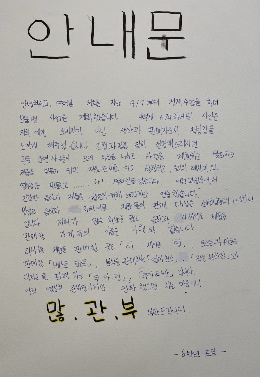 학생들이 작성한 아래 안내문을 잘 읽어 주세요.