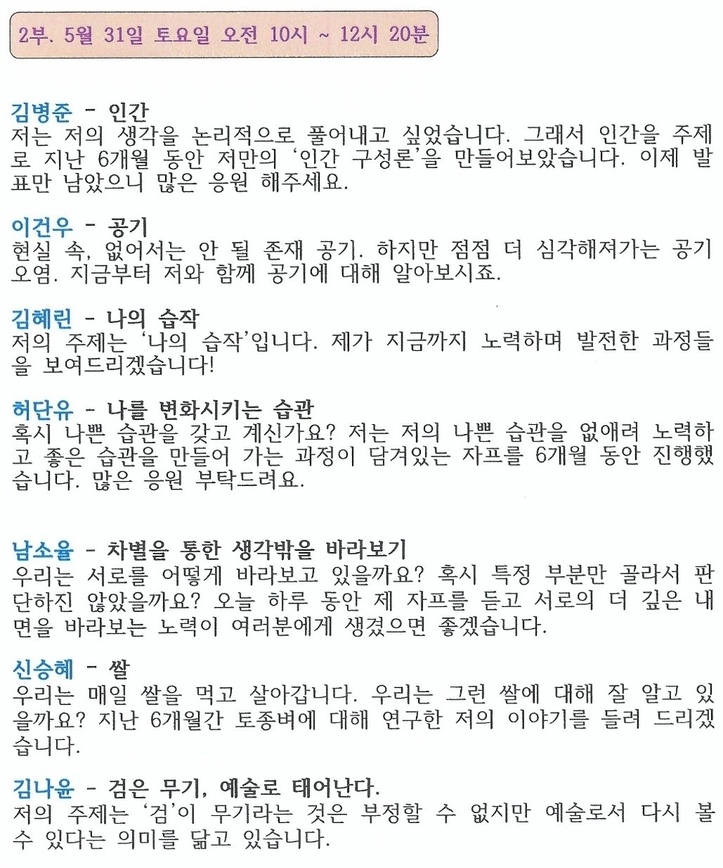 5.30 (금) 오후 4시 반 ~ 5시 반