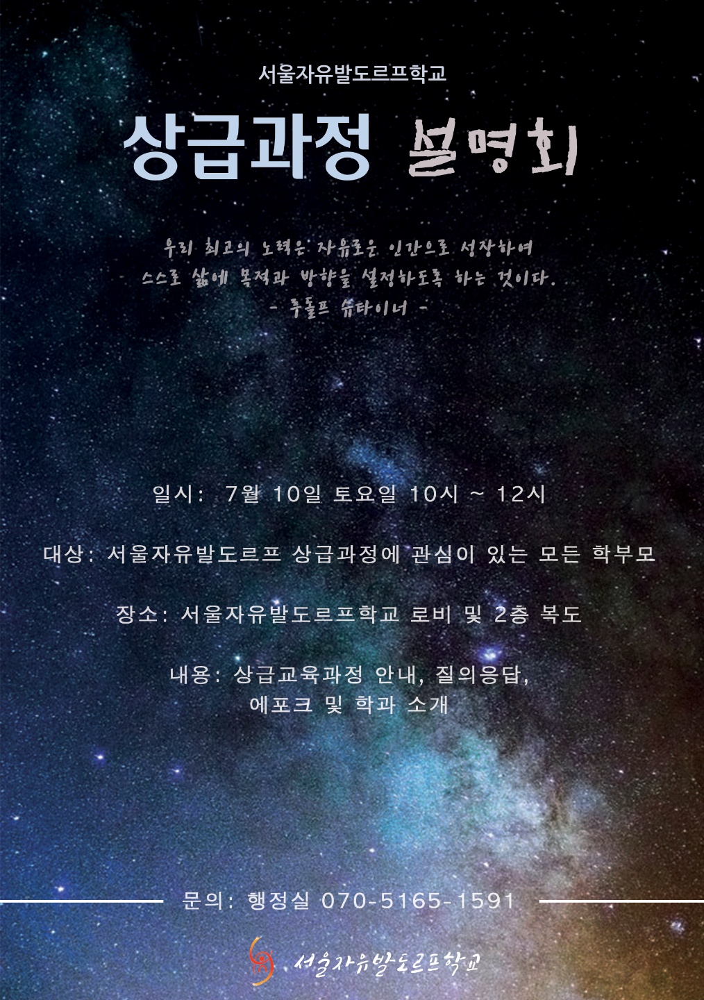 2025년 서울자유발도르프학교 상급과정 설명회에 초대합니다.