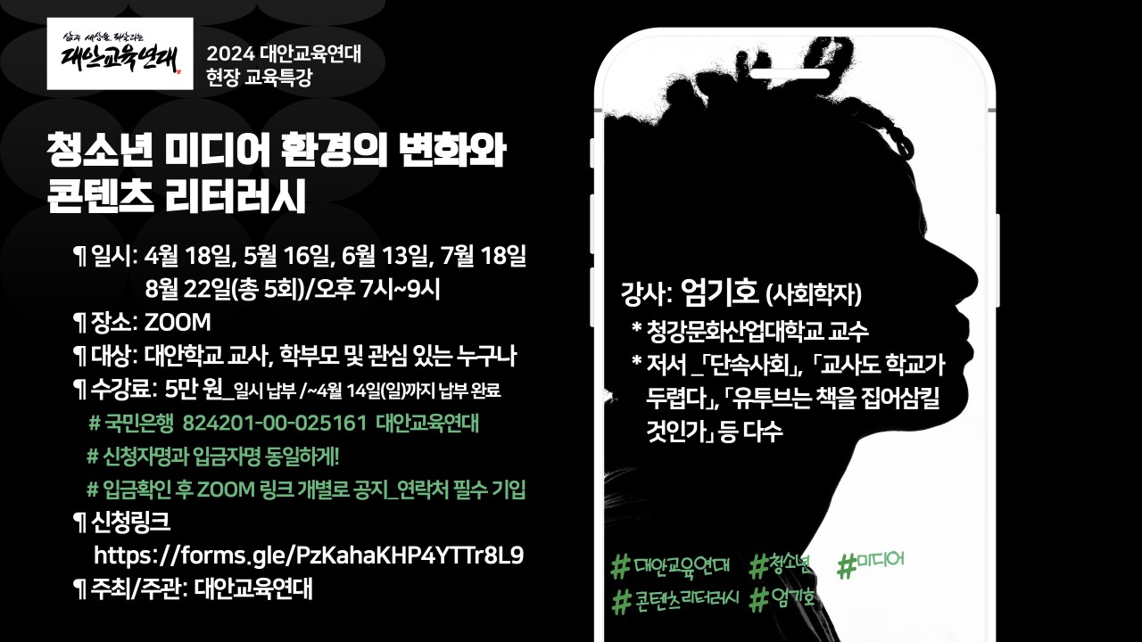 2024 대안교육연대 현장 교육특강 신청 링크 ->