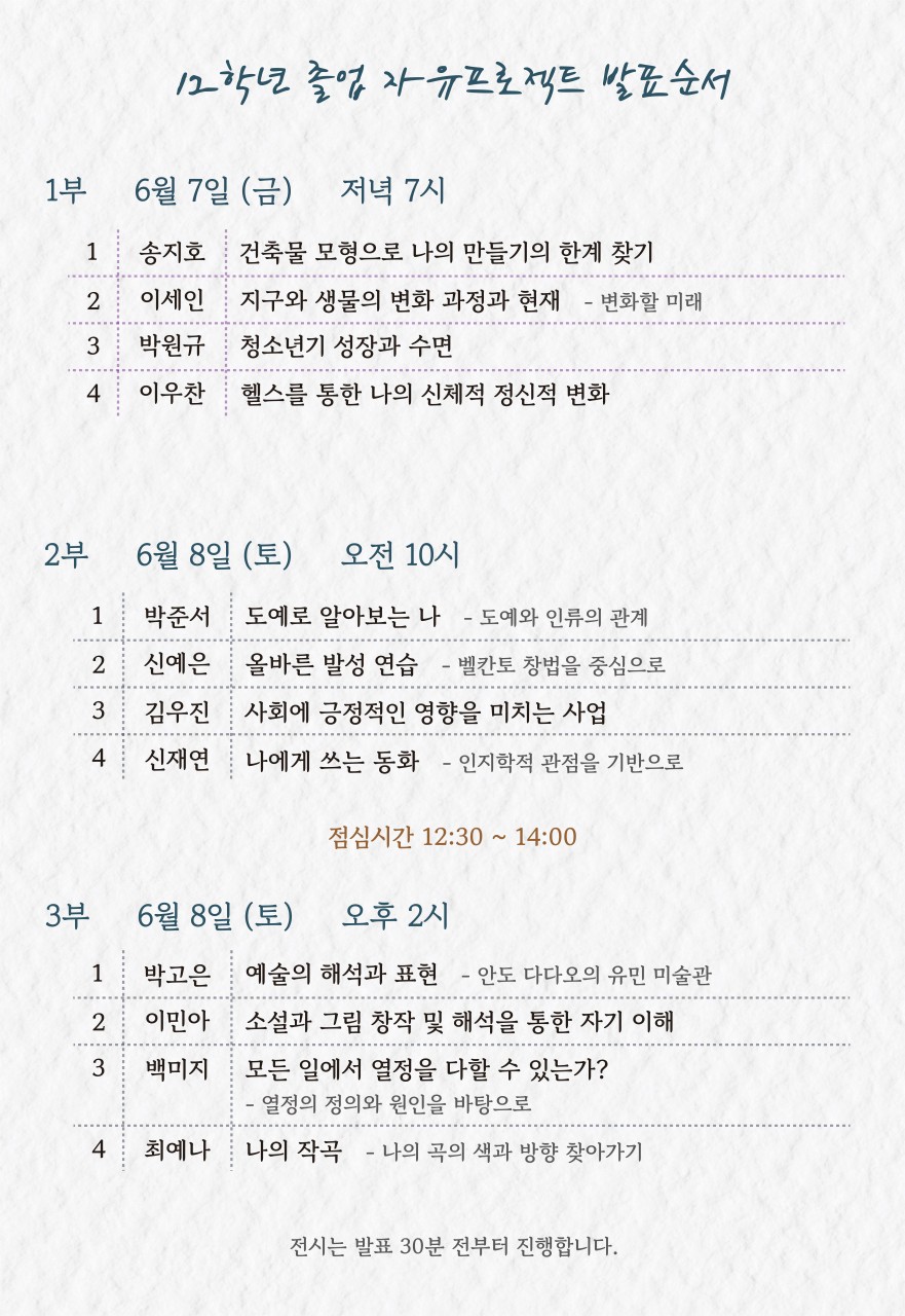 <서울자유발도르프학교 네번째 졸업자유프로젝트에 초대합니다>