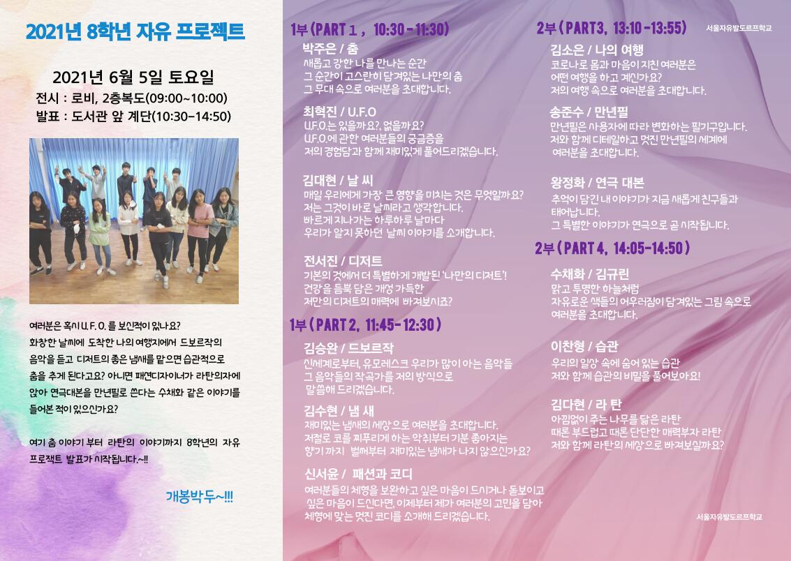 2021년도 8학년 학생들의 마침 자유프로젝트발표에
