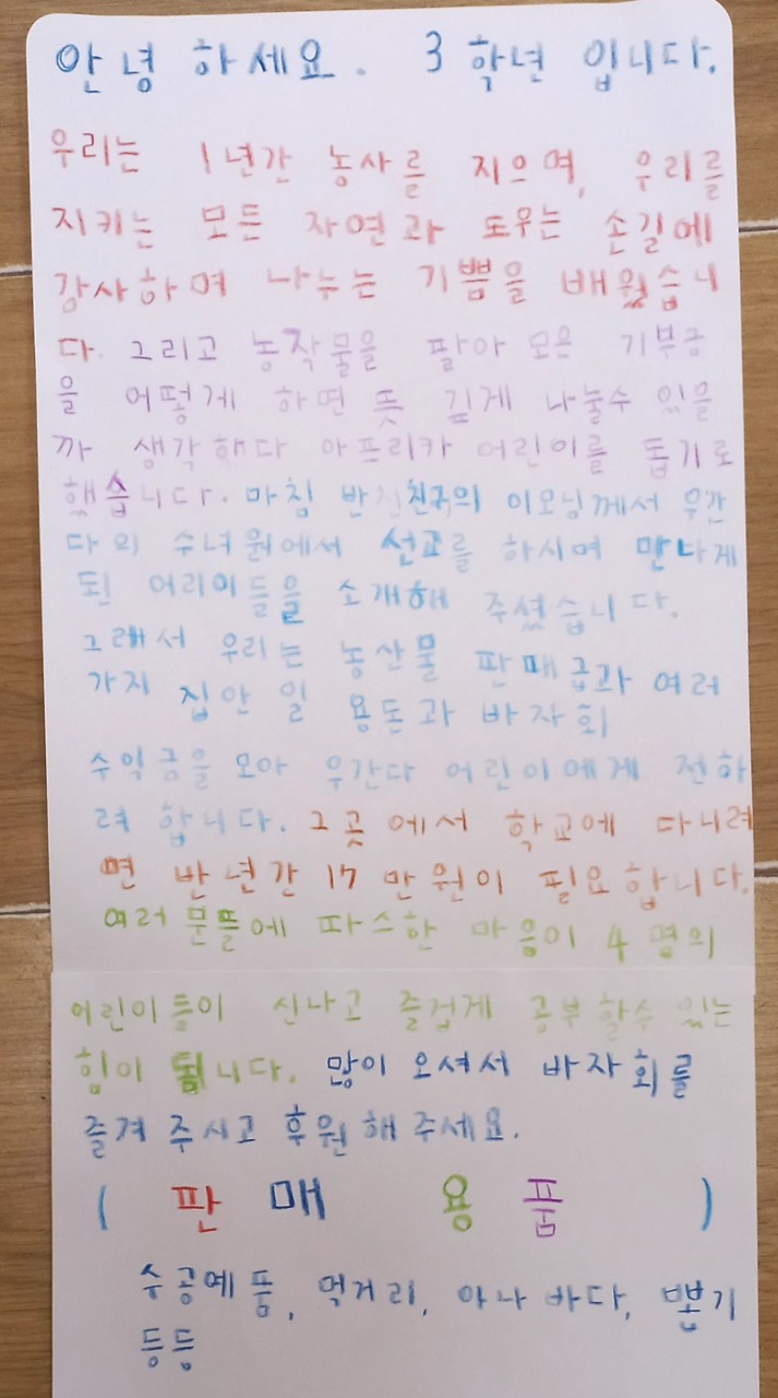 2024학년도 3학년 아프리카 어린이 돕기 바자회