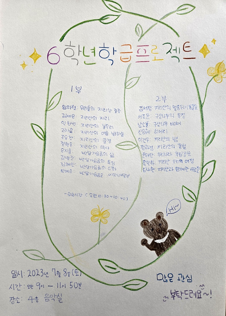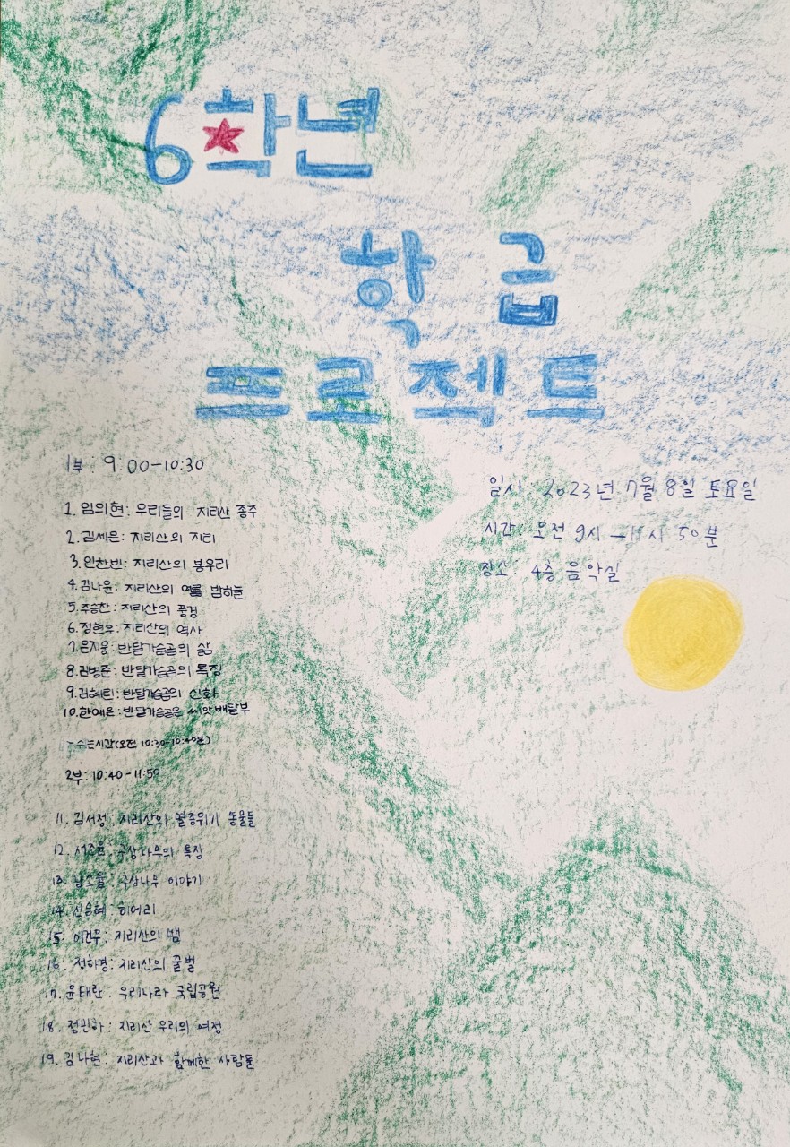 6학년들의 '학급'프로젝트 발표가 열립니다.