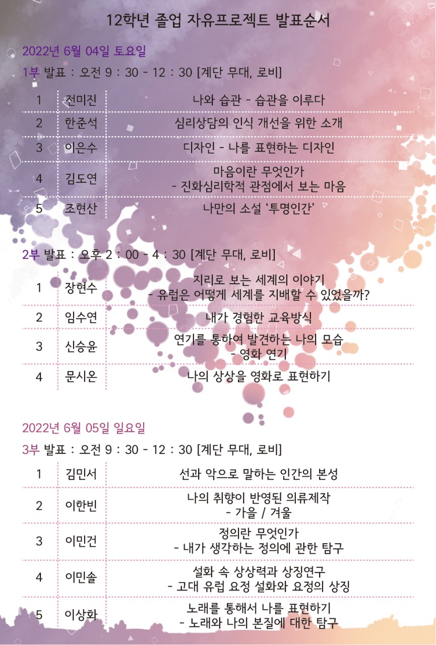 <서울자유발도르프학교 12학년 자유프로젝트에 여러분을 초대합니다>