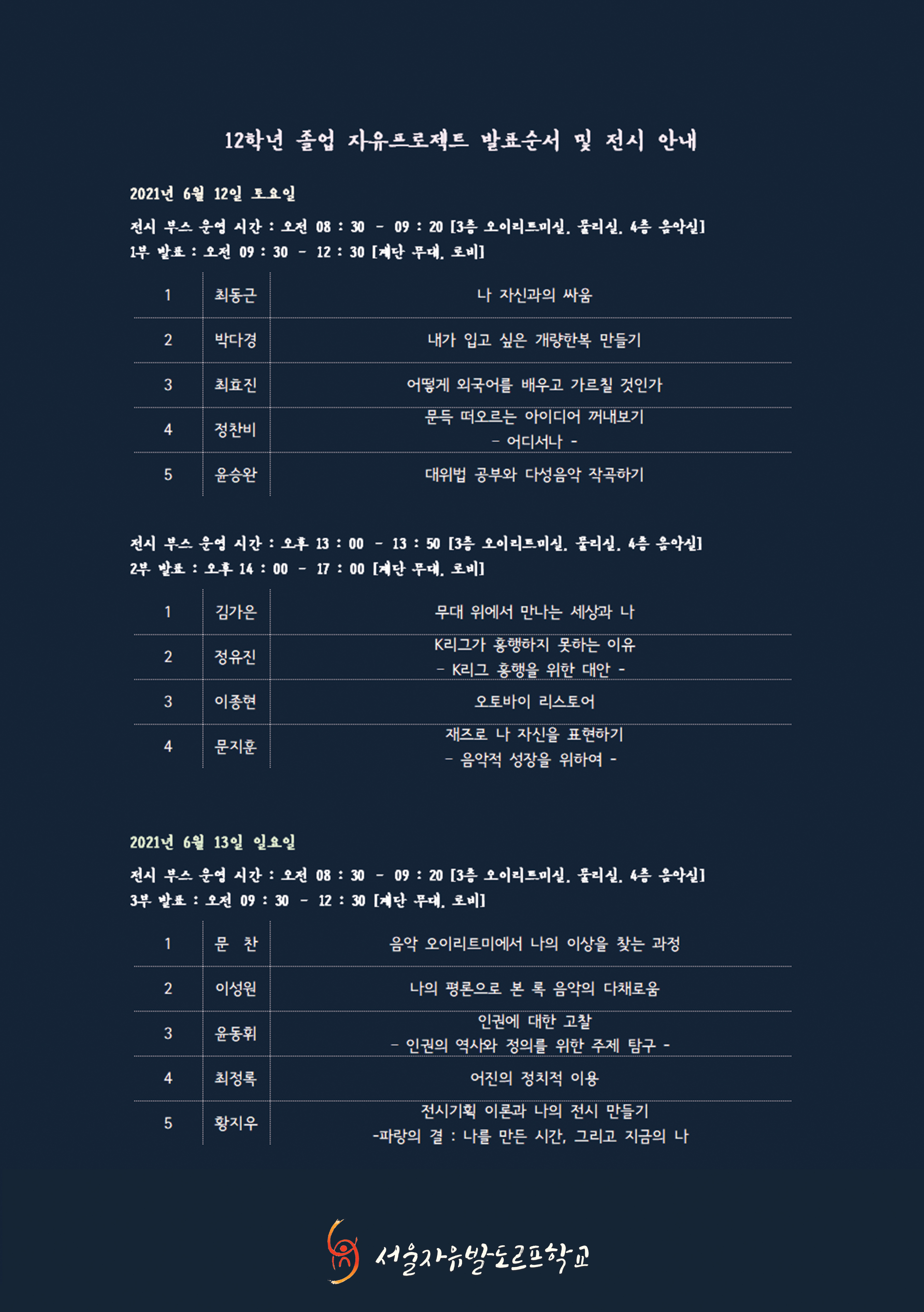 서울자유발도르프학교의 ‘첫 번째 12학년 졸업 자유프로젝트’에 초대합니다.